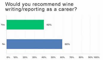 One question in the survey illuminates quite a bit: Would you recommend wine writing as a career? Only 40% of respondents said “yes”. Women, however, responded “yes” to the tune of 47%—nearly half. This is important because, again, the younger writers skew significantly female.