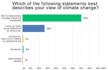 On the issue of climate change, the overwhelming majority of respondents (70%) believe climate change will “Fundamentally change viticulture worldwide”. A mere 1% of survey-takers said it is “unlikely to have much impact on grapegrowing”. It will be the wine writing corps that chronicles any significant changes to the character of regional wines resulting from climate change. It appears they have their eyes wide open, ready to observe how this change to our environment will impact wine drinkers